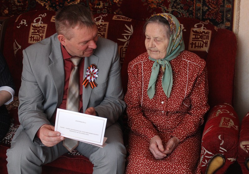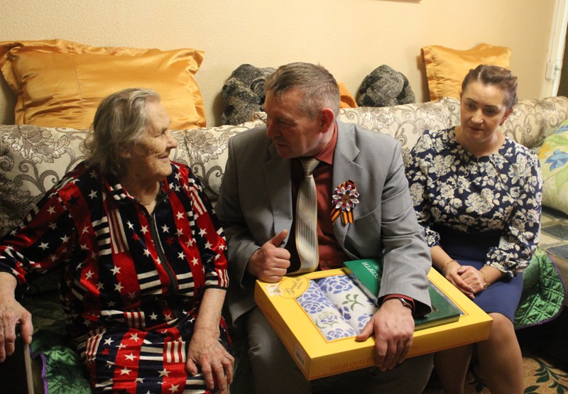 Виктор Иосифович вручил Анне Алексеевне, Глафире Дмитриевне и Федосье Фёдоровне праздничные подарки, поздравил с наступающим Днем Победы и пожелал крепкого здоровья на долгие годы.