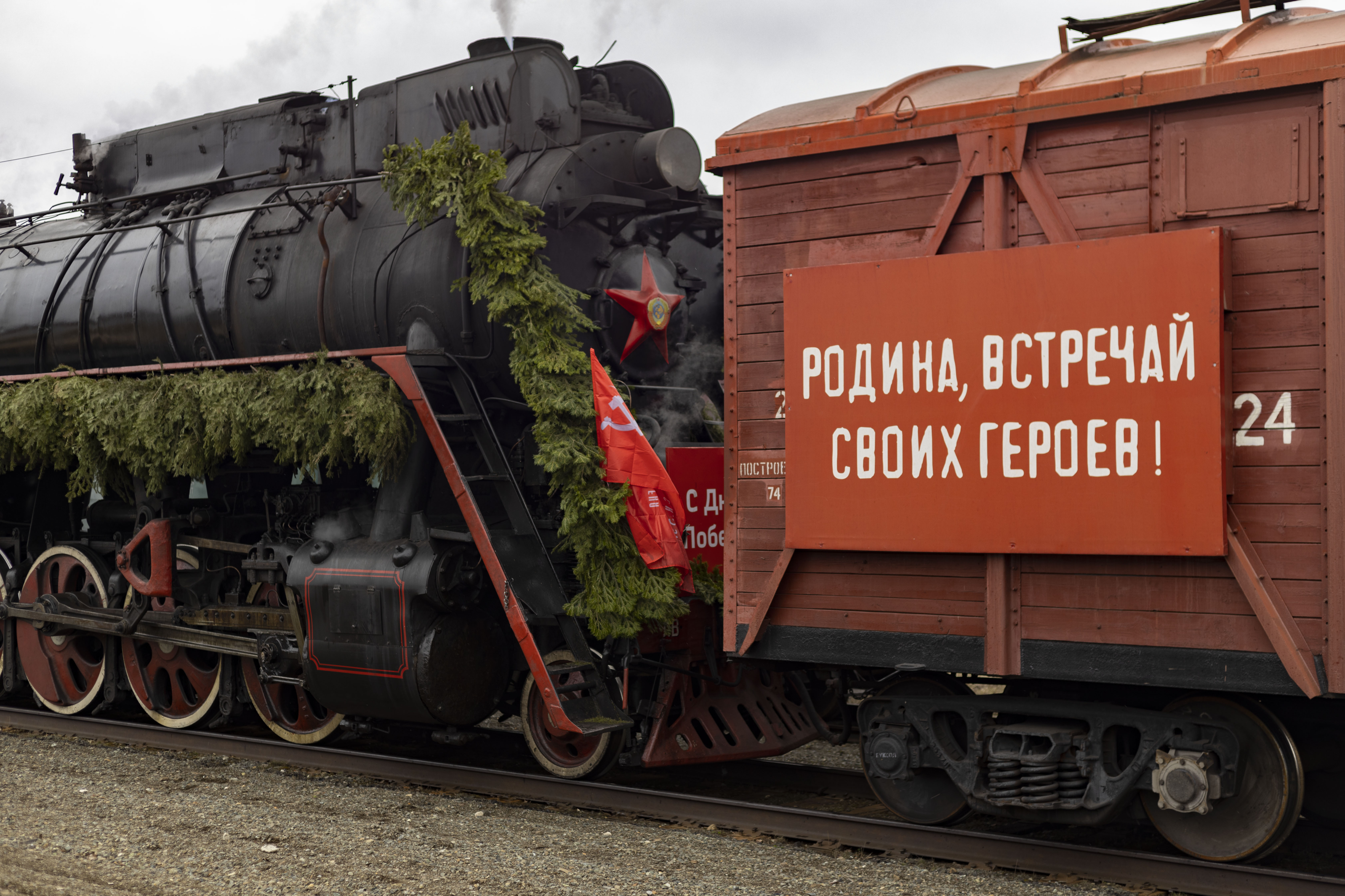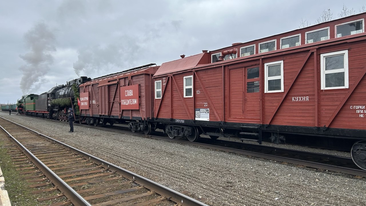 Сегодня на станцию «Вонъеган» торжественно прибыл легендарный ретропоезд «Эшелон Победы», в рамках празднования 80-й годовщины Победы в Великой Отечественной войне.