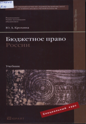 Крохин Ю.А. Бюджетное право России: учебник / Ю.А. Крохина. – М.: Издательство Юрайт; ИД Юрайт, 2010. – 447 с. – (Магистр права).