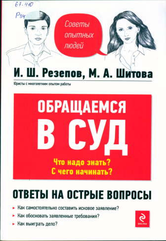Разепов И.Ш. Обращаемся в суд. Что делать? С чего начинать? / И.Ш. Резапов, М.А. Шитова. – М.: Эксмо, 2010. – 192 с. – (Советы опытных людей).