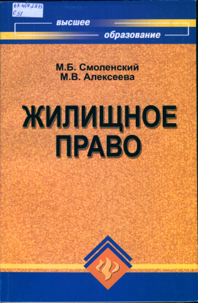 Смоленский М.Б. Жилищное право: учеб. Пособие / М.Б. Смоленский, М.В. Алексеева. – Ростов н/Д: Феникс, 2010. – 187 с. – (Высшее образование).