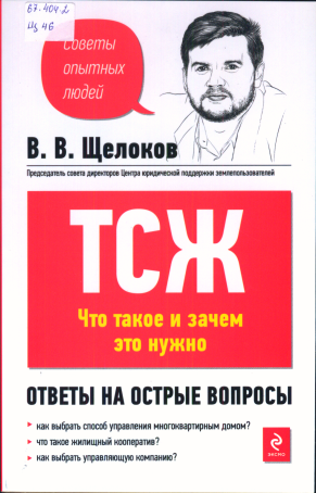 Щелоков В.В. ТСЖ: что это такое и зачем нужно. Ответы на все вопросы / Щелоков В.В. – М.: Эксмо, 2011. – 96 с. – (Советы опытных людей).